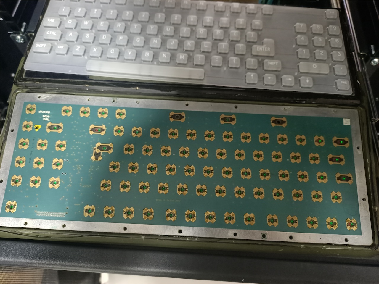 The complicated step here is connecting a ribbon cable to where the PLCC 68 chip is situated, if this was a more normal keyboard, the terminals may already have terminals elsewhere that would be more accessible by a control circuit. However, this required removing the chip, and directly soldering the ribbon cable to the pins we care about.