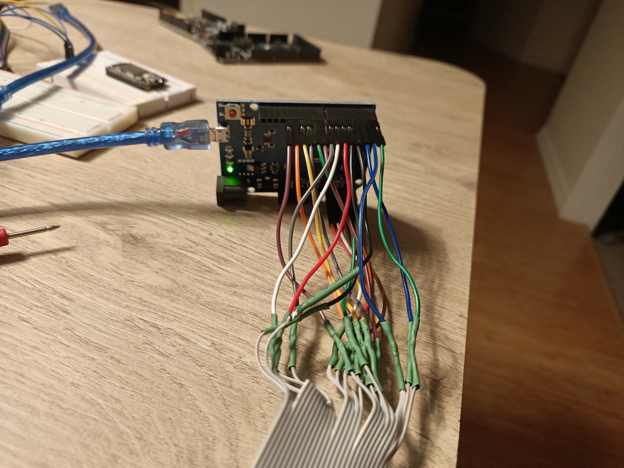 The next step is connecting all the pins to your chosen board, I chose pins 0-7 for the rows, and 8-13 and A0-A4 for the columns. A0-A4 are analog pins on the Leonardo, but can be used as digital I/Os.